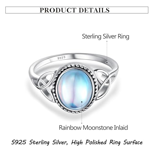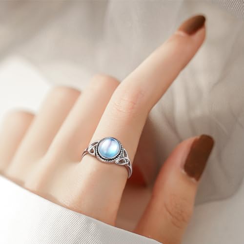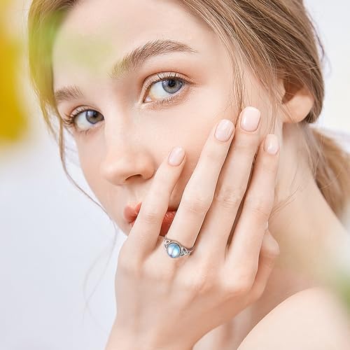 【Pietra di Luna Anello】La pietra d'atmosfera 7 * 9MM è intarsiata su un anello in argento sterling 925 lucidato a lunga durata. L'argento sterling 925 e la scintillante pietra di luna si accentuano perfettamente a vicenda, una raffinata raffinatezza silenziosa con una femminilità mistica, le "Women in the Moon".