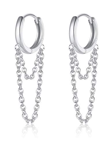 Adramata 925 Argento Sterling Orecchini a Cerchio Piccoli Con Catena a Nappa Per Donna Orecchini a Catena a Goccia Con Cartilagine Di Moda Minimalista