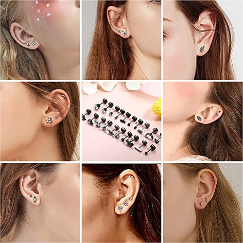 【Set di orecchini in acciaio inossidabile】 Un ordine otterrai 20 orecchini a bottone in acciaio inossidabile in vari stili. Ci sono orecchini a bottone con cartilagine di zirconi cubici, cuore, occhio, luna, stella, farfalla, fulmine, orecchini a serpente, ecc.