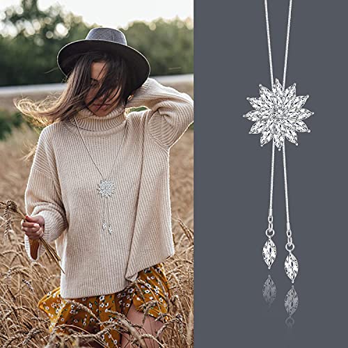 ADRAMATA 4 Pezzi Collana con Ciondolo Lungo per Donna Collana Lunga Maglione Ciondolo con Nappa di Fiori di Cristallo di Perla Collana Maglione Set di Gioielli
