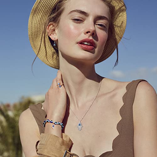 Set Malocchio --5 collane di nazar con collane di malocchio, 4 bracciali di malocchio blu con mano di hamsa, 1 braccialetto di perline di malocchio, 2 bracciali di cordino nero con perline di malocchio, 2 anelli di malocchio, 2 paia di orecchini di malocchio e 1 malvagio ciondolo occhio. Condividi con la famiglia e gli amici per esprimere benedizioni.