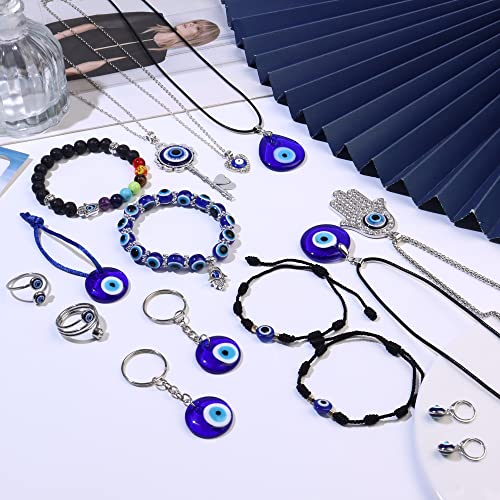 Alta Qualità --Le collane Evil Eye sono realizzate in vetro e lega ambientale. I braccialetti con cordino nero con perline del malocchio sono realizzati in nylon di alta qualità, che può essere allungato e resistente. Gli anelli e gli orecchini del malocchio sono realizzati in metallo di alta qualità. Non facile da sbiadire e arrugginire, può essere utilizzato a lungo, innocuo per la pelle.