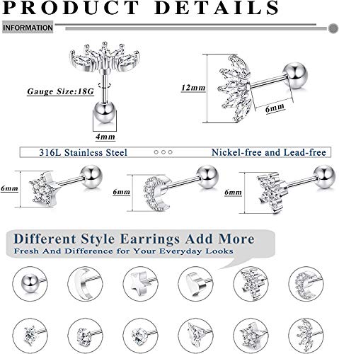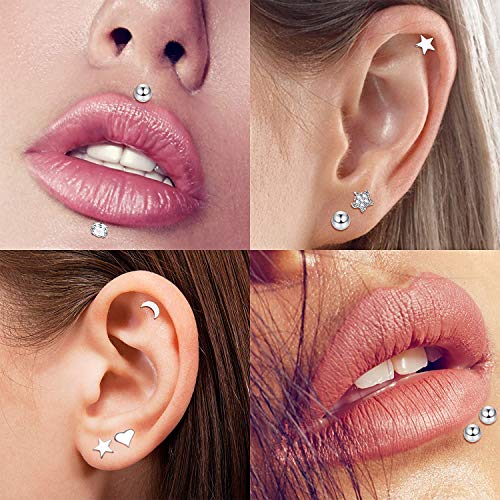 Set di piercing per cartilagine: 12 orecchini per cartilagine, tutti in diversi stili, orecchini a stella, luna, fiore, CZ, stile alla moda e classico, più scelta da indossare tutti i giorni. Il set più economico per te, merita di acquistare.