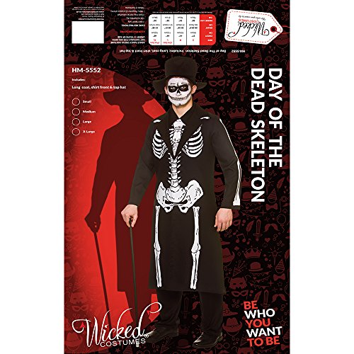 Adult Mens Day of The Dead Skeleton Medium Halloween Fancy Dress Costume