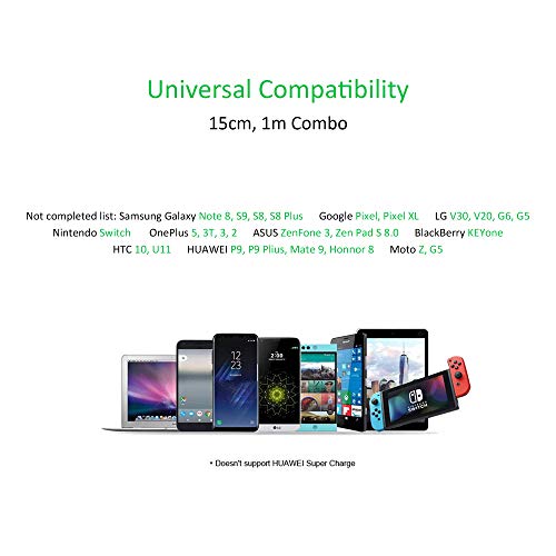 ADWITS Cavi da USB Type-C a USB-A 2.0 maschio, [confezione da 2] 15cm e 1m 56K Ohm Resistance Braided USB A to C Cavi di ricarica e sincronizzazione rapidi per smartphone, tablet, laptop e altro