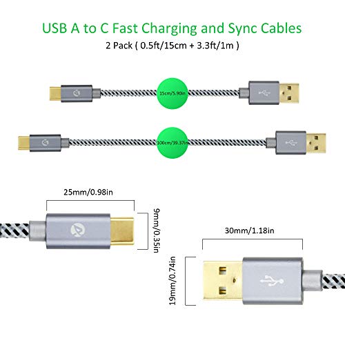 Confezione da 2 cavi di ricarica USB 2.0 di tipo C: cavo da 3,3piedi/1m da utilizzare con la ricarica dell'adattatore CA e la sincronizzazione del desktop;