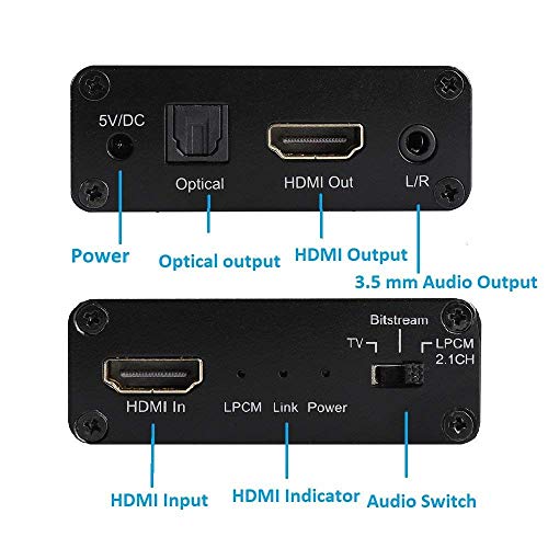 Adwits HDMI 2.0 18Gpbs Audio Extractor, Ingresso HDMI a HDMI + Digitale SPDIF Toslink ottico + Analogico L/R Stereo 3.5mm Uscita Auxode Splitter, Supporto 4K2K@60Hz 10bits HDR HDCP 2.2 CEC