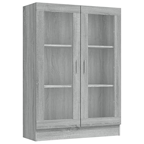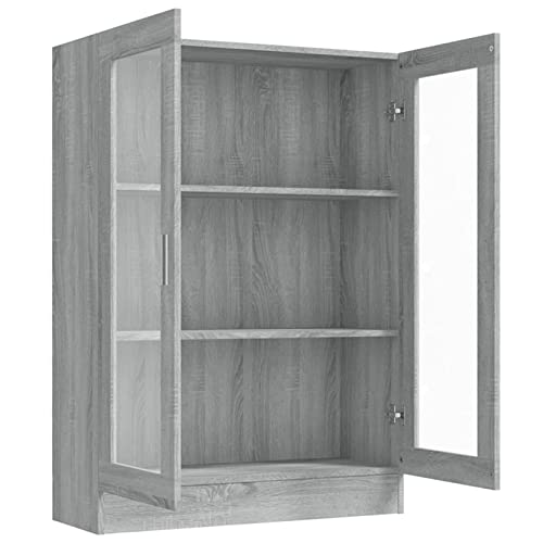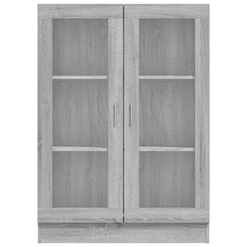 ADWOA Mobile Vetrina Grigio Sonoma 82,5x30,5x115 cm Legno Multistrato,Vetrina Soggiorno Elegante in Legno Cristalliera