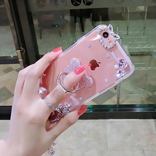 Aearl Custodia iPhone 6 Plus/6S Plus Brillantini Lusso Bling Diamante Cristallo Strass Creativo Nappa Disegno Clear Trasparente Anti-Scratch Dura Plastica PC Rigida Cover -Diamant Pink