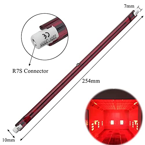 "Caratteristiche delle lampade alogene al quarzo": lampada alogena a infrarossi R7s da 254 mm dimmerabile. Tubo di riscaldamento Ruby ha una bassa radiazione e utilizza le caratteristiche della radiazione ottica per penetrare dall'esterno verso l'interno. Completamente asciutto, senza preriscaldamento. È la temperatura prevista in 60 secondi, temperatura costante. Nessun danno agli occhi.