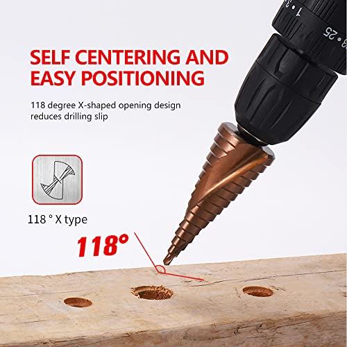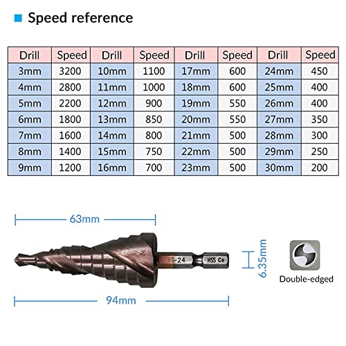 Aedcbaide Cobalto Punte a Gradini 6-24mm, HSS M35 Spirale Flauto Large Drill Multi-Hole Hex Shank Svasatura Taglio di Foratura Ingrandire Piatto in Acciaio Inox Quenching Piastra in Acciaio