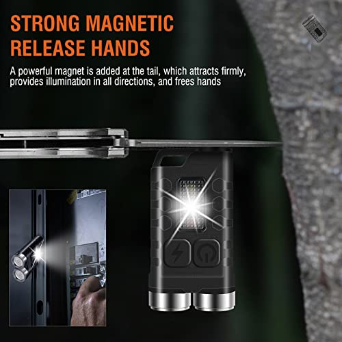 Aedcbaide V3 Mini LED Torcia Portachiavi Torcia Super Luminosa 900 Lumen Portachiavi con Clip Design Torcia Portachiavi Impermeabile IP65 Torcia Ricaricabile USB con 12 Modalità per il Campeggio