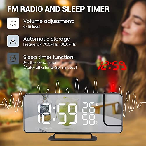 Aedcbaide Sveglia con Proiettore da 7 Pollici Sveglia Radio Sveglia Digitale da Comodino con Proiettore con Rotazione di 180 ° Luminosità Regolabile con Temperatura Umidità e Uscita USB Ricarica