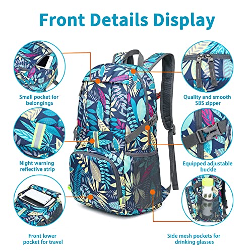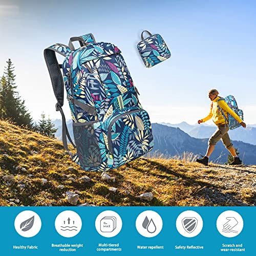 Aedcbaide Zaino Pieghevole Ultraleggero Zaino da Escursionismo Ripiegabile da 35 Litri Borsa da Giorno Resistente all'acqua con Design Riflettente Notturno Zaino da Passeggio Portatile per Campeggio