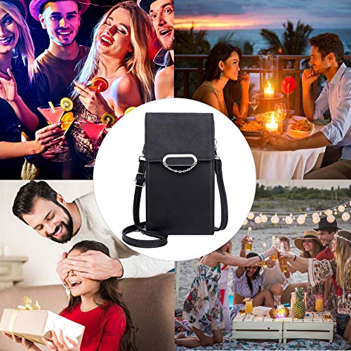 Aeeque - Custodia a tracolla da donna, con portamonete, in pelle PU, per ragazze, con tracolla regolabile, rimovibile, per cellulare sotto i 7 pollici, colore: Nero