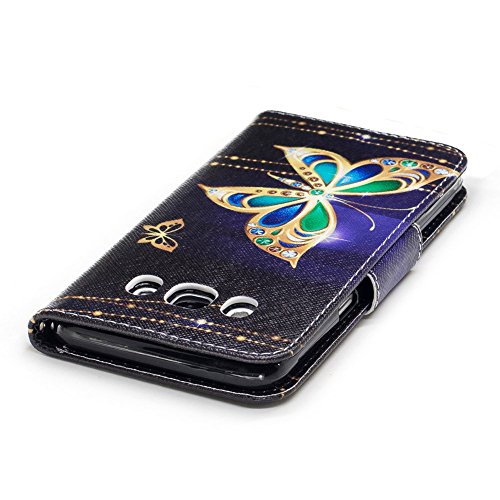 Aeeque Lusso Flip Smart Cover in Pelle PU per Samsung Galaxy J5 (2016) 5.2", Sfondo Nero Custodia Galaxy J5 2016 SM-J510 Portafoglio a Libro con Modello Farfalle Oro Supporto Liscio Design Antiurto Antigraffio Protezione Bumper
