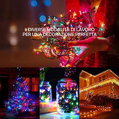 AeeYui Catena Luminosa Esterno Solare,Luci Solari Esterno 12M 100LED Solare Luce Stringa solari Lucine Decorazione di festa Impermeabile IP65 Catena Luminosa per Giardino, Albero, Patio, Festa