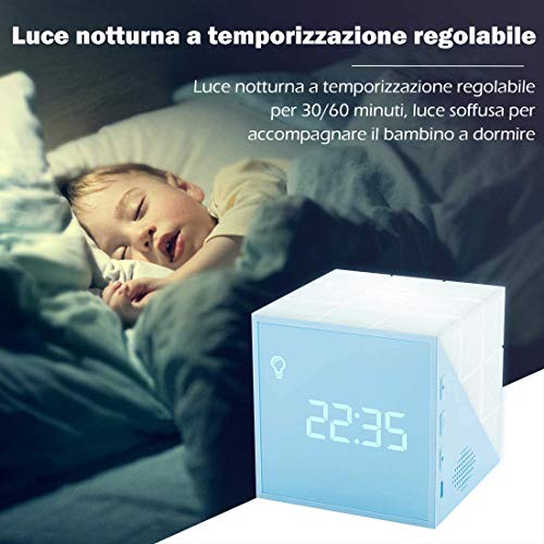AeeYui Sveglia Digitale Minimalista Mini Cube con Data e Temperatura Sound Control Sveglia da Tavolo per Viaggi con LED Luce Notturna Funzione Snooze per Camera da Letto, Ufficio, Cucina