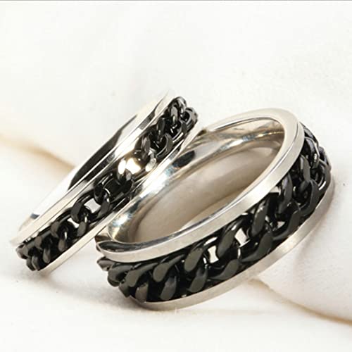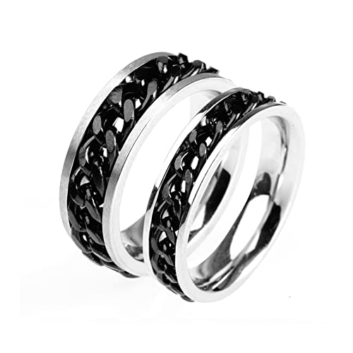 Aeici Anelli Incisione Coppia Personalizzata, Fedi Nuziali in Acciaio Anello A Catena Cubana Nera Donna 17 + Uomo 17