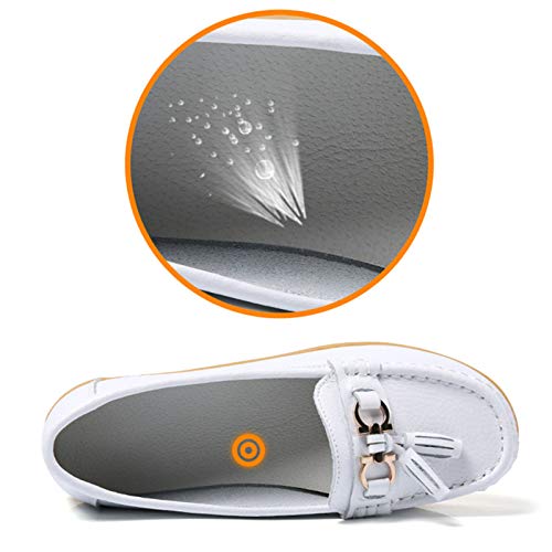 AELEGASN Mocassini in Pelle Donna Scarpe Moda Scarpe da Ginnastica Estive Casual Piatto Confortevole La Scelta Migliore per Il Lavoro E L'uso Quotidiano,Bianca,44