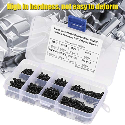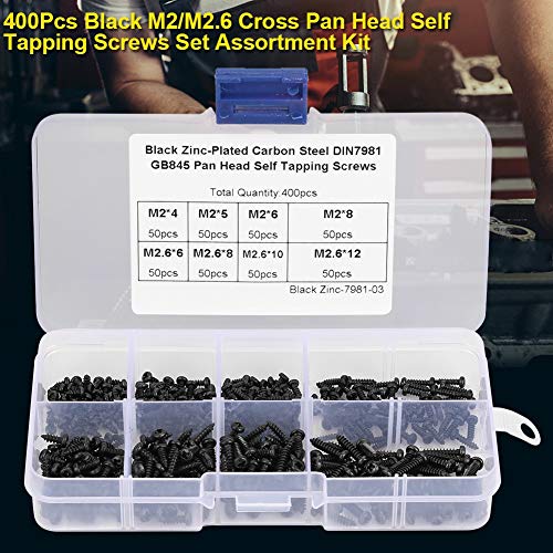 Aeloa Autofilettante Vite Testa Piatta M2 / M2.6 Viti Autofilettanti a Testa Svasata Set Assortimento Kit, 400 Pezzi (Nera)