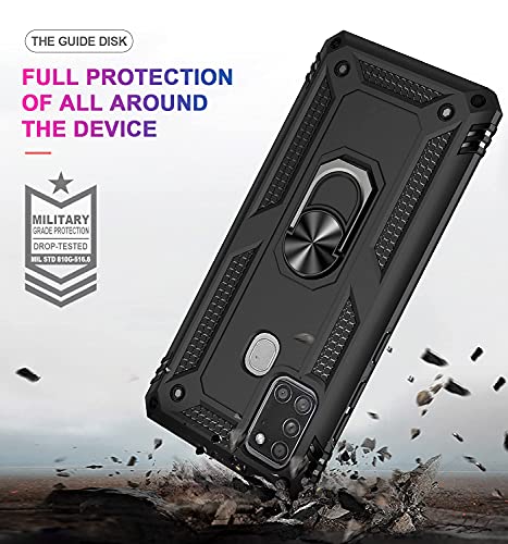 AENLIG Cover per Samsung Galaxy A21s con Pellicola Protettiva Vetro Temperato,[Grado militare] con Anello magnetico rotante,Custodia in TPU antiurto in silicone per Galaxy A21s -Nero