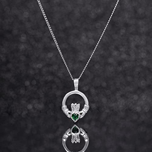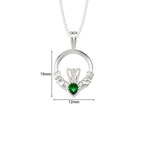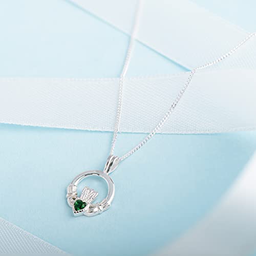Aeon Collana Claddagh in argento Sterling 925 e ciondolo in zirconia cubica verde smeraldo | Catena regolabile da 46 a 48 cm | Regalo celtico irlandese per donna | Panno per lucidatura incluso, Pietra