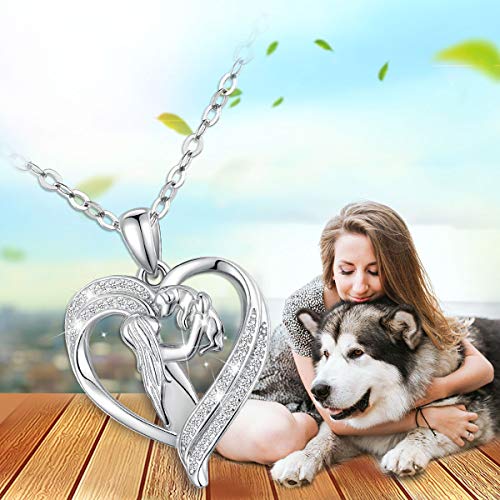 AEONSLOVE Collana Cane e Ragazza in Argento Sterling 925 Collana con Ciondolo Cane per Donne Amante dei Cani Regali di Gioielli Cani per Ragazze Signore