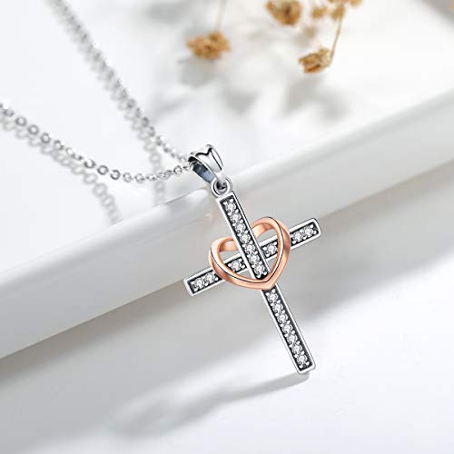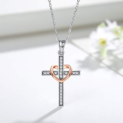 AEONSLOVE Collana Donna Argento 925 Collane Croce Cuore Oro Rosa Fortunato Famiglia Catene Ciondolo Pendente in Argento Gioielli Regalo Donna Mamma Ragazza Bambina Nonna Natale Compleanno