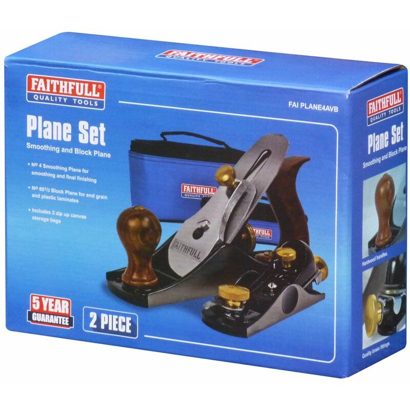 Set di 2 pialle in valigetta Pialla n°4: Angolo di taglio 45° per legni duri e teneri. Corpo in ghisa con base rettificata su 3 lati. Maniglie anteriori e posteriori in legno verniciato. Completamente regolabile. Larghezza ferro 50 mm. Suola 245 x 60 mm. Pialla 60 1/2: Corpo in ghisa con suola rettificata su 3 lati. Angolo di taglio 13,5° per il lavoro di rifinitura. Completamente regolabile. Larghezza ferro 35 mm. Suola 160 x 45 mm. 245 x 60 mm - 160 x 45 mm 50 mm - 35 mm