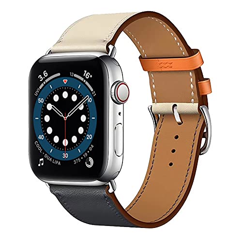 Aergood Compatibile con Apple Watch Cinturino 38/40/41mm,Sottile Cinturini in Vera Pelle per iWatch serie 7/6/5/4/3/2/1/SE,Per Uomo e Donna 38mm/40mm/41mm,Bianco/blu navy