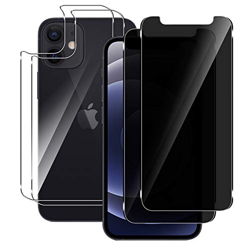 Aerku Compatibile con Privacy Pellicola Protettiva + Vetro Temperato Retro iPhone 12 Mini 5.4" [2 Pezzi + 2 Pezzi], Anti Spy Vetro Temperato [Anti Graffio] Anti-Spia Pellicola Protettiva