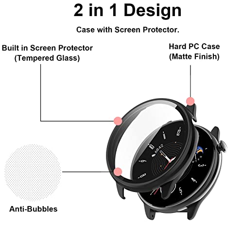 【Protezione a Tutto Tondo】La cover di Amazfit GTR Mini è realizzata in PC materiale di alta qualità, ha una buona resistenza agli urti e alle cadute la sua cassa robusta e i bordi rialzati possono proteggere meglio l'orologio. Il robusto vetro temperato protegge il tuo schermo dai graffi