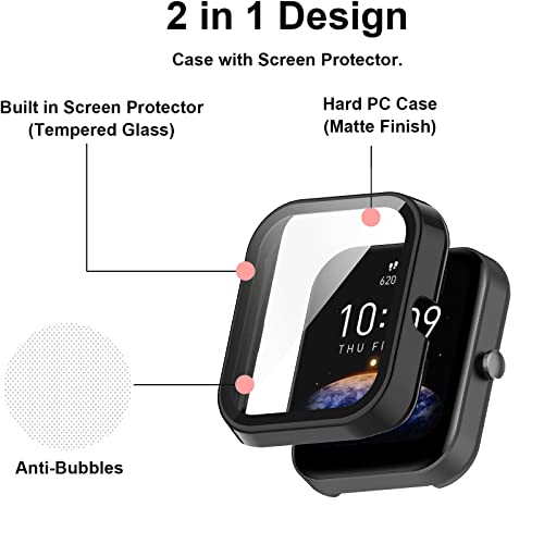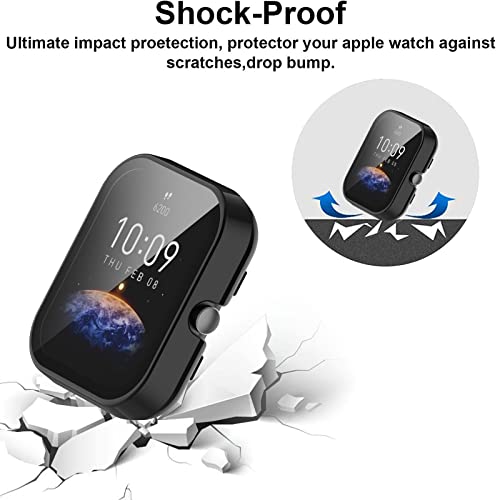 Aerku Custodia per Amazfit Bip 3 Pro/Amazfit Bip 3, [Con Vetro Temperato] 9H HD Anti-Graffio Custodia Protettiva Telaio Rigida PC Cover Protezione - Nero