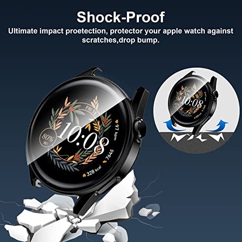 【Protezione a Tutto Tondo】La cover di Huawei Watch GT 3 42MM è realizzata in PC materiale di alta qualità, ha una buona resistenza agli urti e alle cadute la sua cassa robusta e i bordi rialzati possono proteggere meglio l'orologio. Il robusto vetro temperato protegge il tuo schermo dai graffi