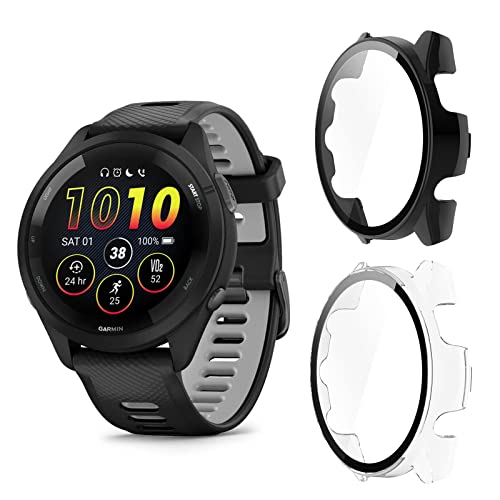 Aerku Custodia per Garmin Forerunner 265, [Con Vetro Temperato] 9H HD Anti-Graffio Custodia Protettiva Telaio Rigida PC Cover Protezione - Trasparente&Nero