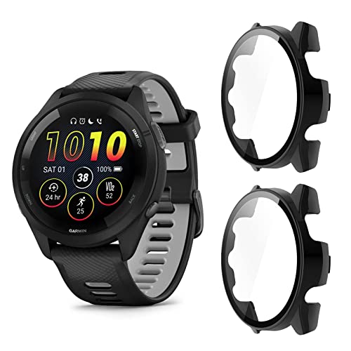 Aerku Custodia per Garmin Forerunner 265, [Con Vetro Temperato] 9H HD Anti-Graffio Custodia Protettiva Telaio Rigida PC Cover Protezione - Nero
