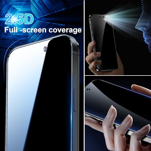 Aerku Privacy Pellicola Protettiva Copertura Totale per iPhone 15 Pro Max 6,7 Pollici, con Protezione Lente Fotocamera, Anti Spy Vetro Temperato Film, HD Anti-Spia Protezione Schermo [2+2 Pezzi]