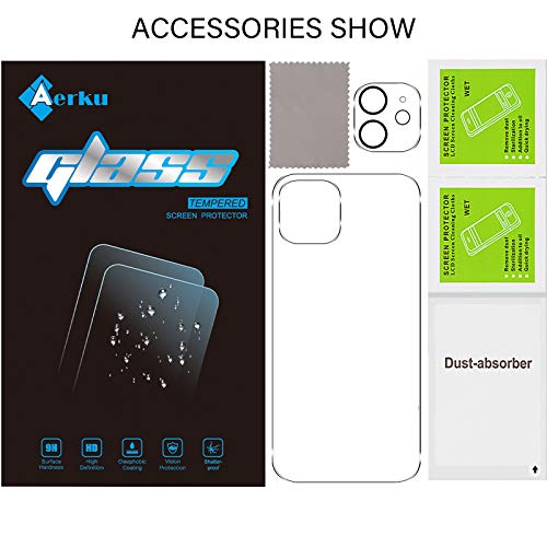 Aerku Vetro Temperato Retro + Fotocamera Posteriore Pellicola Vetro Temperato per iPhone 12 5G 6.1", [2 Pezzi + 2 Pezzi] HD Anti Graffi Pellicola Protettiva Posteriore