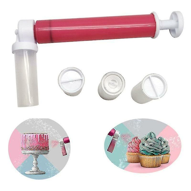 Il pratico strumento per decorare torte ti consente di applicare rapidamente e facilmente vernice e glitter su torte, cupcake, cioccolatini e altri dolci. L'aerografo manuale viene fornito con uno spruzzatore a pompa e 4 serbatoi. Il nuovo sistema di interblocco fissa saldamente il serbatoio alla pompa per garantire che vernice o glitter non fuoriescano. Materiale: plastica con guarnizione O-ring in gomma. Pompa: diametro 9,5 x 1,5 pollici (diametro 24 x 3,5 centimetri);