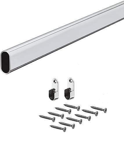 AERREGI Guardaroba guardaroba guardaroba ottone | Asta CROMO LUCIDO per armadio 1500 mm OVALE | Tubo metallico vintage | Tubo per mobili 30 x 15 mm | Inclusi 2 fissaggi | 1 Pezzo