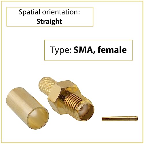 Aerzetix - C11317 - Connettore/adattatore SMA femmina per cavo coassiale RG58 per crimpare - TV antenna schermo satellitare radio frequenza video