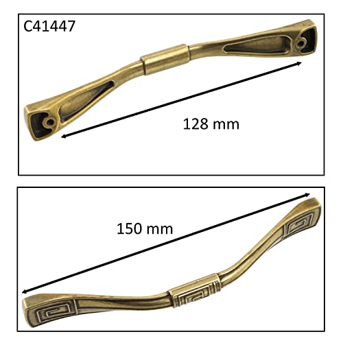 Aerzetix - C41447 - Set di 5 maniglie per mobili interasse 128mm - porte armadio cassetto decorazione interno arredamento cucina soggiorno assemblaggio - in metallo - finitura oro invecchiato
