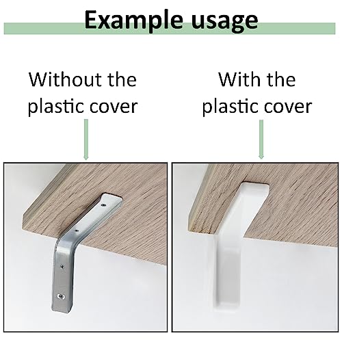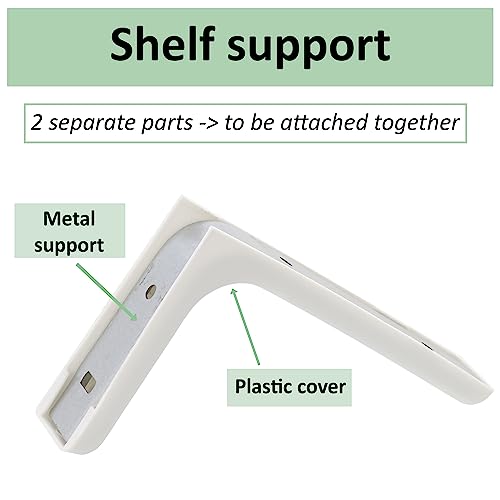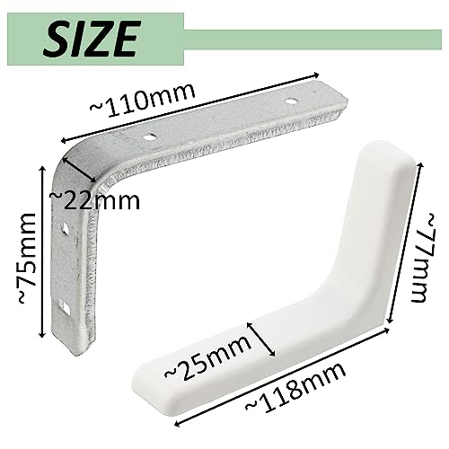 AERZETIX - C41722 - Set di 6 Supporti staffe consolle per mensole ad angolo retto 110x75x22mm con copertura in plastica 118x77x25mm per fissaggio a parete - in acciaio - colore bianco