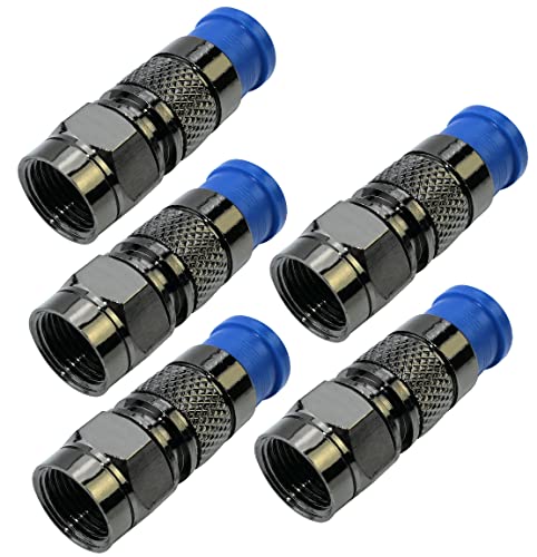 AERZETIX - C53304 - Set di 5 connettori/raccordi/spine diritti a compressione tipo F - per cavo coassiale satellitare con dado per avvitare