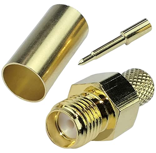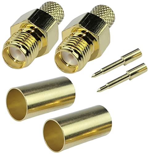AERZETIX - C53380 - Set di 2 connettori/spine SMA-RP maschio diritto a crimpare per cavo coassiale H155 - colore dorato - in metallo