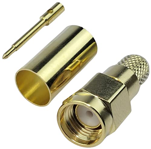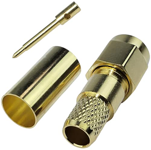 Aerzetix - C53382 - Set di 2 connettori/spine SMA maschio diritto a crimpare per cavo coassiale H155 - colore dorato - in metallo