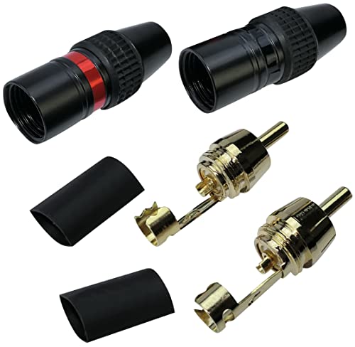 AERZETIX - C53563 - Set di 2 connettori/spine nero e rosso RCA maschio - per cavo 6.5mm - per saldare
