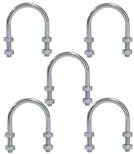 AERZETIX - C59046 - Set di 5 Bulloni a forma di "U" per tubo 1" e 4 dadi M6x60mm - per tubo con diametro 1" ~34mm - DIN3570 - in acciaio zincato - colore argento