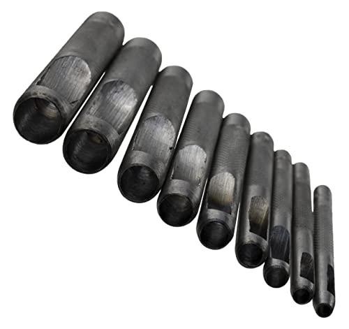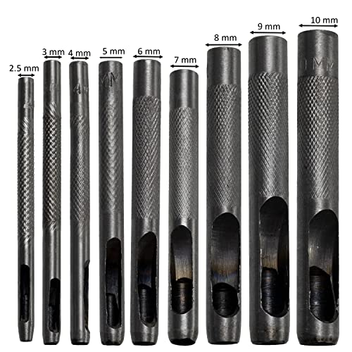 AERZETIX - C59554 - Set di 9 utensili di punzonatura Ø2,5, 3, 4, 5, 6, 7, 8, 9, 10mm punzone cavo perforatore - lunghezza da 80 a 93mm - pelletteria pelle cintura cinturino tessuto